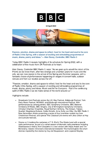 music, drama, poetry and ideas."— Alan Davey, Controller, BBC Radio 3