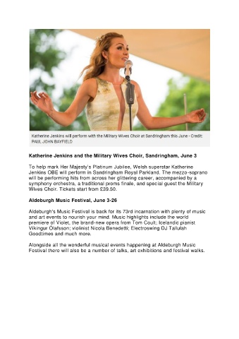 Jenkins OBE will perform in Sandringham Royal Parkland. The mezzo-soprano