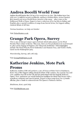 Andrea Bocelli begins the UK leg of his world tour in July. The Italian tenor has