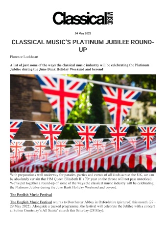 29 May 2022). Alongside a packed programme, the festival will celebrate the Jubilee with a concert