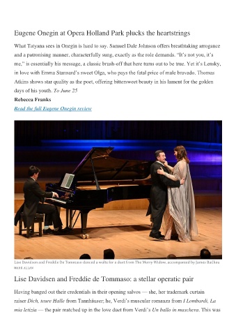 Eugene Onegin at Opera Holland Park plucks the heartstrings