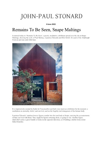 I returned today to ‘Remains To Be Seen’, a poetic, meditative exhibition spread over the site at Snape