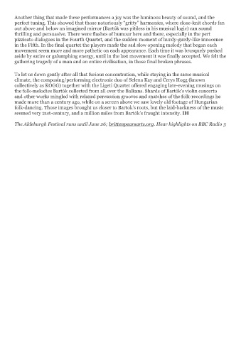 folk-dancing. Those images brought us closer to Bartok’s roots, but the laid-backness of the music