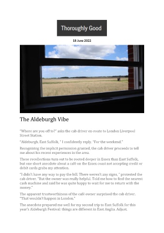 but one short anecdote about a café on the Essex coast not accepting credit or
