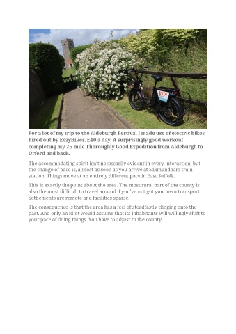 For a lot of my trip to the Aldeburgh Festival I made use of electric bikes