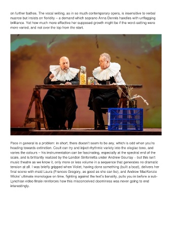 on further bathos. The vocal writing, as in so much contemporary opera, is insensitive to verbal