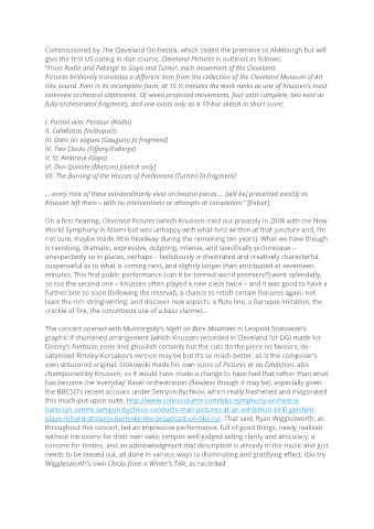 On a first hearing, Cleveland Pictures (which Knussen tried out privately in 2008 with the New