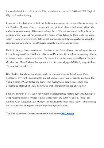 which is tragic on several levels. Still, we did hear one finished Knussen orchestral piece: his
