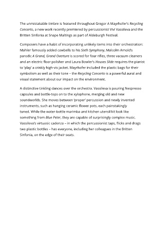 symbolism as well as their tone – the Recycling Concerto is a powerful aural and
