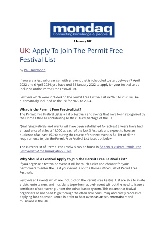 performers to enter the UK if your event is on the Home Office's List of Permit Free