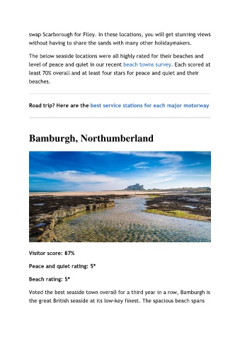 level of peace and quiet in our recent beach towns survey. Each scored at
