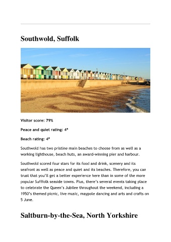Southwold scored four stars for its food and drink, scenery and its