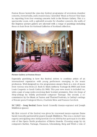 concerts, themed talks, and a masterclass. I attended ‘Music at Paxton’ four days