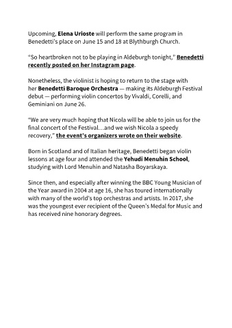 “So heartbroken not to be playing in Aldeburgh tonight,” Benedetti