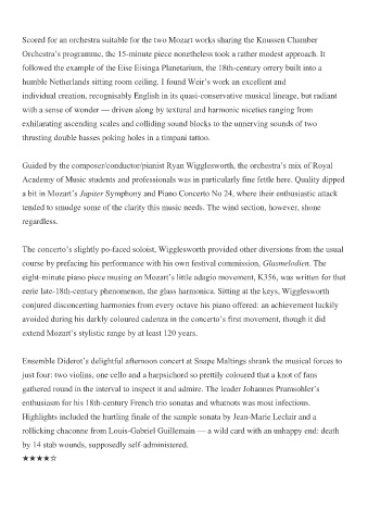 a bit in Mozart’s Jupiter Symphony and Piano Concerto No 24, where their enthusiastic attack