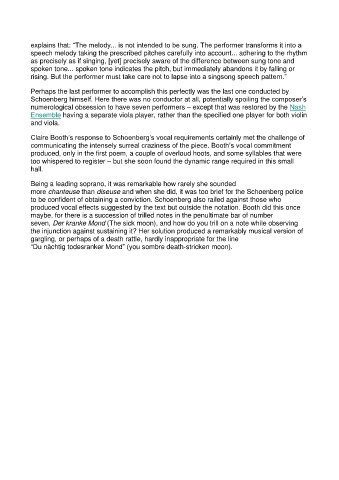 Claire Booth’s response to Schoenberg’s vocal requirements certainly met the challenge of