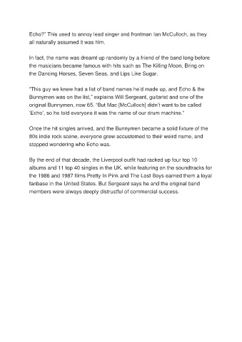 Echo?” This used to annoy lead singer and frontman Ian McCulloch, as they