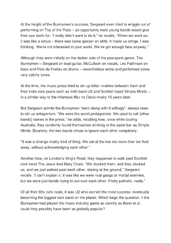 At the height of the Bunnymen’s success, Sergeant even tried to wriggle out of