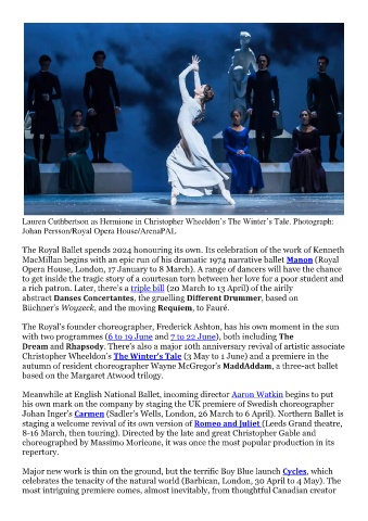 Christopher Wheeldon’s The Winter’s Tale (3 May to 1 June) and a premiere in the