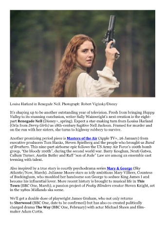 part Renegade Nell (Disney+, spring). Expect a star-making turn from Louisa Harland