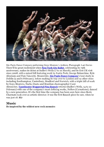 anniversary, makes its debut at Sadler’s Wells (7 to 10 March), and its first UK visit