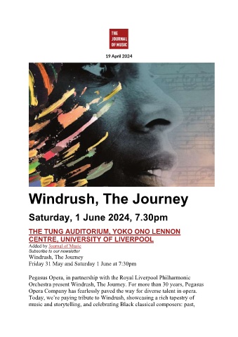 Orchestra present Windrush, The Journey. For more than 30 years, Pegasus