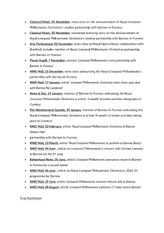 • NWE Mail, 02 February, article ‘Royal Liverpool Philharmonic Orchestra at Barrow