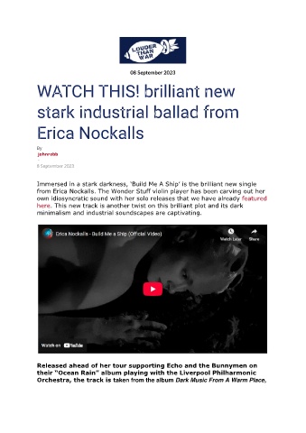 from Erica Nockalls. The Wonder Stuff violin player has been carving out her