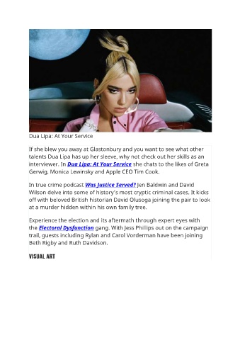 interviewer. In Dua Lipa: At Your Service she chats to the likes of Greta