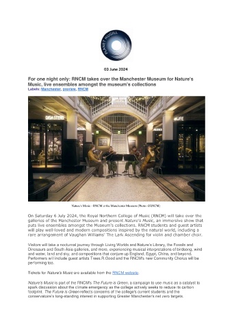 For one night only: RNCM takes over the Manchester Museum for Nature's
