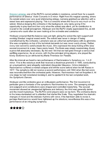 overwhelmed by the orchestra. Lamsma’s was an unhurried performance with no gimmicks.