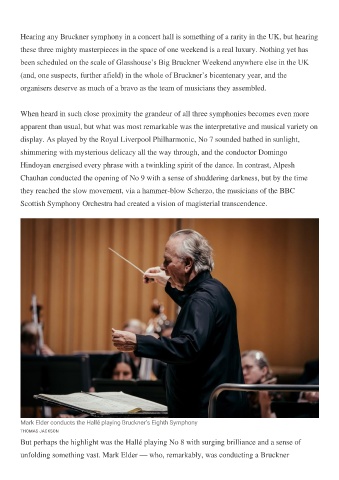 unfolding something vast. Mark Elder — who, remarkably, was conducting a Bruckner