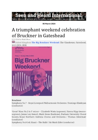 United Kingdom The Big Bruckner Weekend: The Glasshouse, Gateshead,