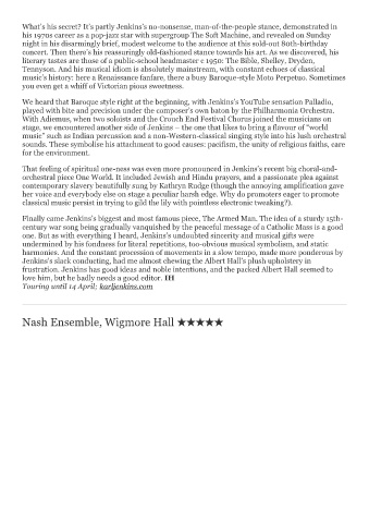 one. But as with everything I heard, Jenkins’s undoubted sincerity and musical gifts were
