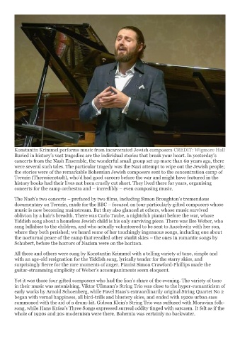Konstantin Krimmel performs music from incarcerated Jewish composers CREDIT: Wigmore Hall