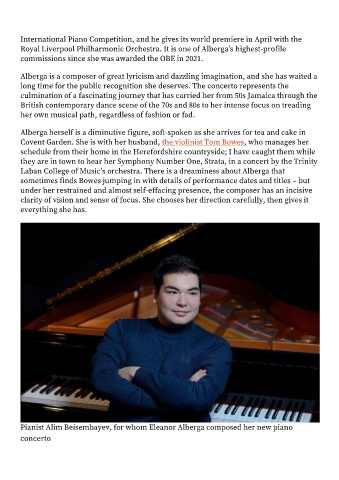 Pianist Alim Beisembayev, for whom Eleanor Alberga composed her new piano