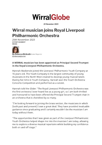Hannah told the Globe: “The Royal Liverpool Philharmonic Orchestra was