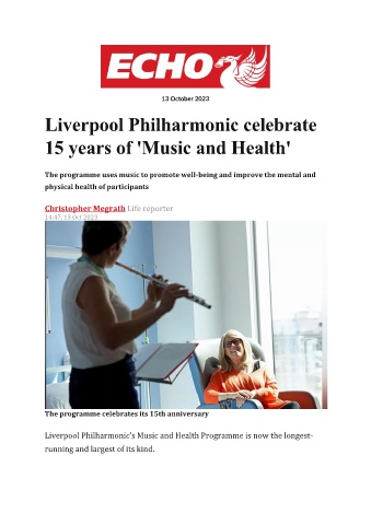 Liverpool Philharmonic’s Music and Health Programme is now the longest-
