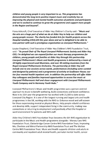 said:- "As proud Chair of The Royal Liverpool Philharmonic Society and Alder Hey
