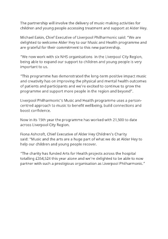 said: “Music and the arts are a huge part of what we do at Alder Hey to