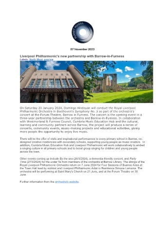 addition, Cumbria Music Education Hub and Liverpool Philharmonic will work collaboratively to embed