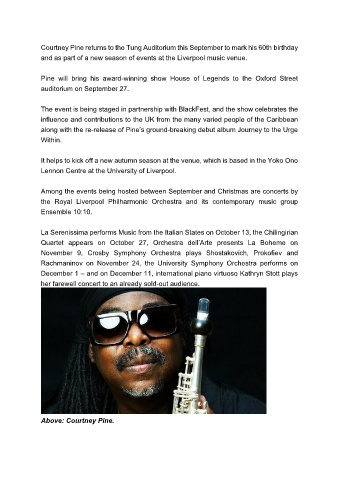 Courtney Pine returns to the Tung Auditorium this September to mark his 60th birthday