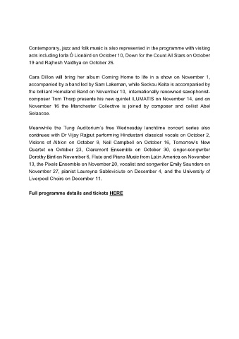 Contemporary, jazz and folk music is also represented in the programme with visiting