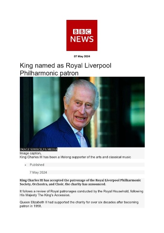 King Charles III has accepted the patronage of the Royal Liverpool Philharmonic