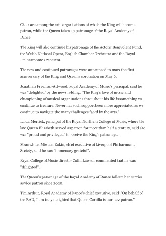 the RAD, I am truly delighted that Queen Camilla is our new patron."