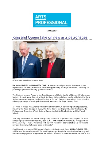 HM KING CHARLES and HM QUEEN CAMILLA have accepted patronages from several arts