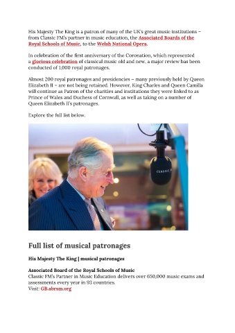 His Majesty The King is a patron of many of the UK’s great music institutions –