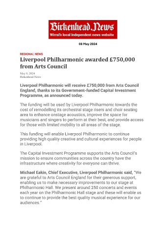 Michael Eakin, Chief Executive, Liverpool Philharmonic said, “We