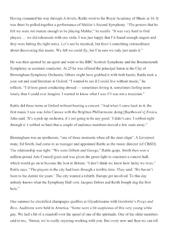 Having crammed his way through A-levels, Rattle went to the Royal Academy of Music at 16. It