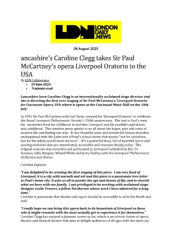 she is directing the first ever staging of Sir Paul McCartney’s ‘Liverpool Oratorio’